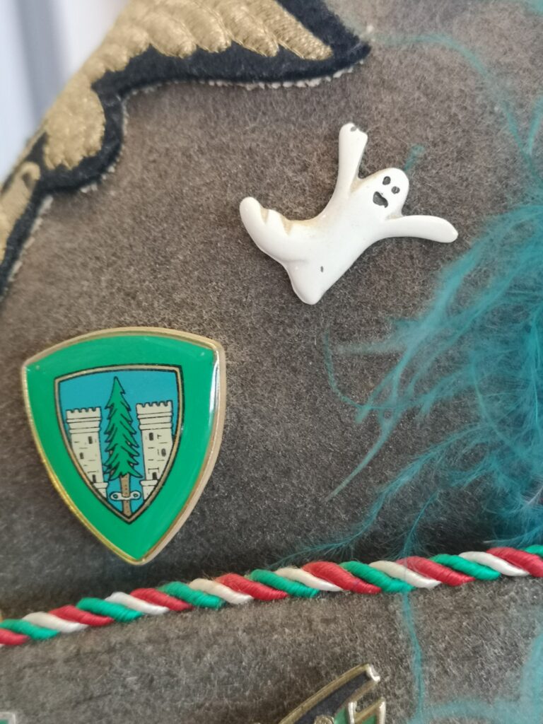 A l’occasion de l’assemblée nationale des Alpins (cette année à Biella), nous publions quelques détails sur le chapeau d’un alpin de la « Brigata Cadore » : il s’agit d’un « chapeau de congédiant ». En effet, selon la tradition, chaque alpin sur le point de terminer son service était appelé « fantôme » (parce qu’il était sur le point de « disparaître » aux yeux de ses camarades) et ornait son chapeau en le personnalisant avec divers éléments.