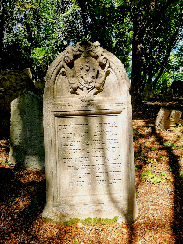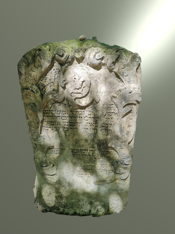 Stèle du vieux, honoré, craignant Dieu et estimé maître Šemu’el Luzzatto, que sa mémoire soit en bénédiction / Cette stèle a été placée comme tombeau pour lui, le vieux et illustre Šemu’el, / qui est décédé l’année de la rédemption « de leurs âmes » (=[5]470) (Ps. 49,9), le 11 Kislew (=14 novembre 1709), jour où il mourut de vieillesse. / Si sa poussière est ici, son âme est là, / elle est retournée paître parmi les lys, / à l’ombre de celui (Dieu) qui parcourt les cieux (Deut. 33, 26) / et qui nous a donné la vie )13.
